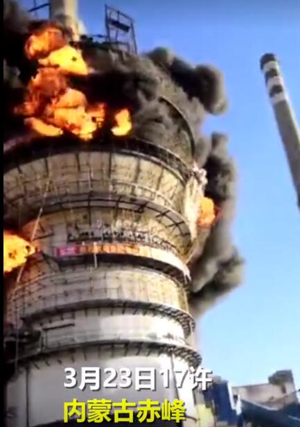 圖(4)2018年3月23日內蒙古赤峰某電廠脫硫塔起火,損失幾千萬,脫硫塔防腐涂料選擇很重要。